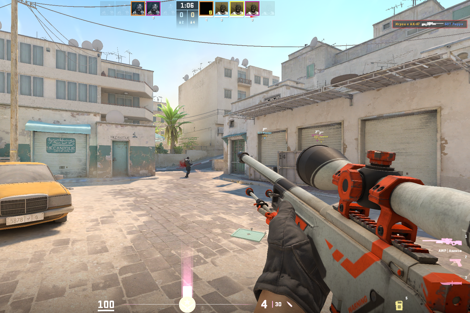 Задача снайпера — успеть на угол и сделать первый фраг. Но эта роль опасна: один промах — и вас «задавят». Поэтому многие снайперы после опен-фрага отходят к участку для закладки бомбы и принимают соперников на просвете.